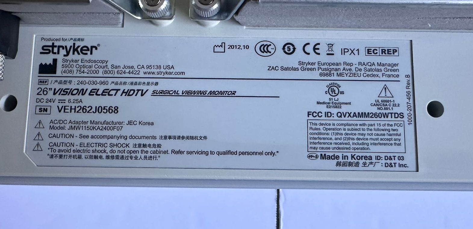 ![[PARTS] Stryker 26" Vision Elect HDTV Flat Panel Monitor 240-030-960 NO POWER SUPPLY - Image 4](https://medlots.com/wp-content/uploads/2026/03/56270-328-7004100015-004.jpg)